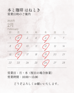 本と珈琲はねとき、おかげさまで本日2月2日からオープンできました!